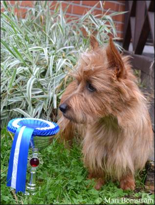 29.08.2015: Rovaniemen ryhmänäyttelyyn 23.8. oli ilmoitettuna meiltä ainoastaan Tiitu, eli Ch Sirvian Just My Cup Of Tea. Irlantilaistuomari vaihtui suomalaiseen kasvattajatuomari Harto Stockmariin. Alkuperäisen 10 ilmoittautuneen aussin sijaan paikalla oli vain 3 aikuista + 1 pentu. Tiitu oli ainoa ERIn ja SAn saanut aussi, joten se valittiin rotunsa parhaaksi!